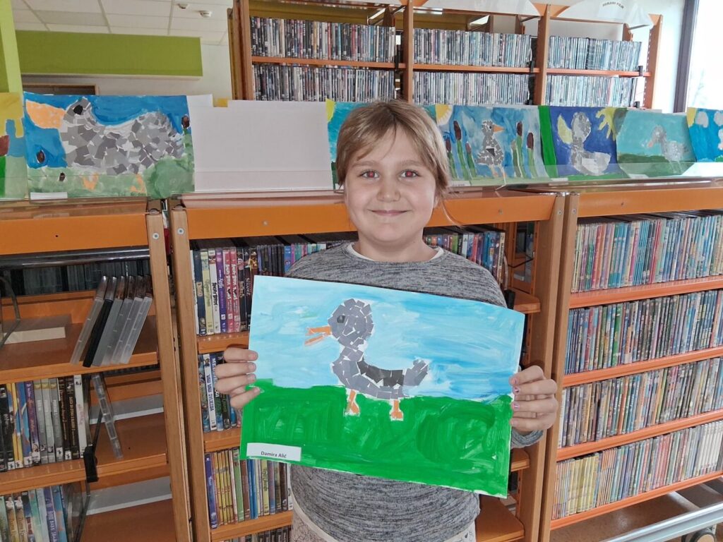 Na satu Hrvatskog jezika upoznali su pisca Hansa Christiana Andersena preko njegovih bajki, a najviše ih se dojmila bajka Ružno pače. Suosjećali su se s malim pačetom, a njegovu su tugu na satu Likovne kulture ilustrirali u kombiniranoj likovnoj tehnici: kolaž – mozaik i tempere. Tako su nastali ovi lijepi likovni radovi.