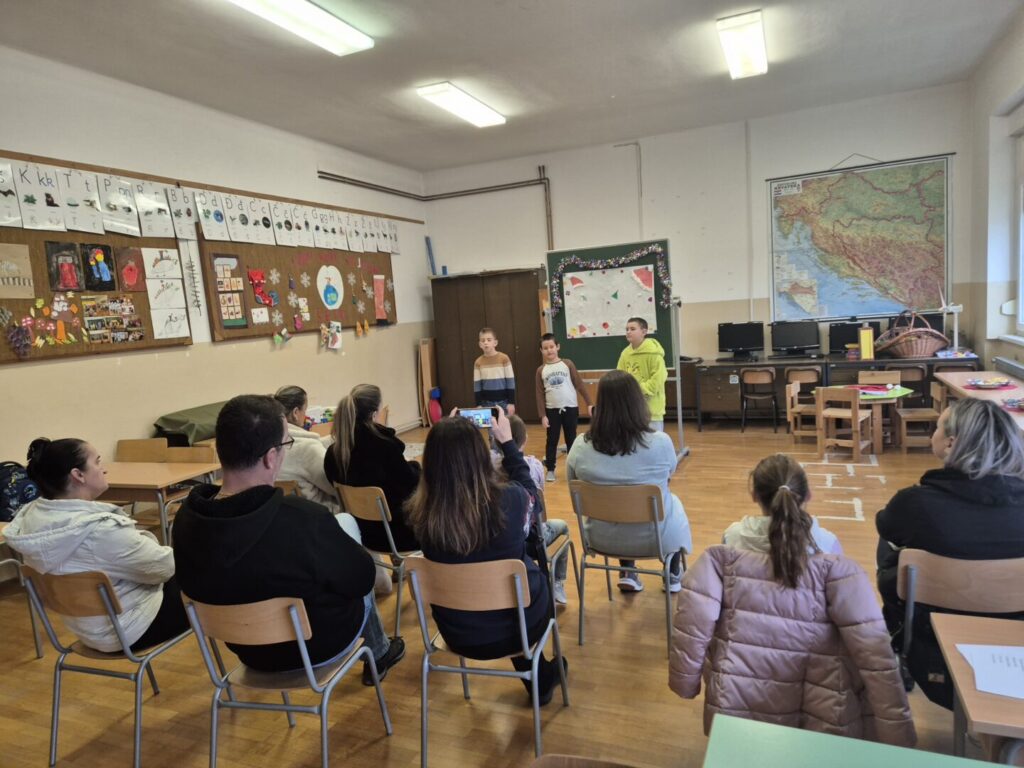 Nakon odlično odrađenih nastupa, učenici područne škole i njihovi roditelji ostali su na druženju gdje su uz kekse i sok prepričavali dojmove sa današnje priredbe.
