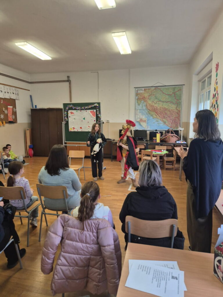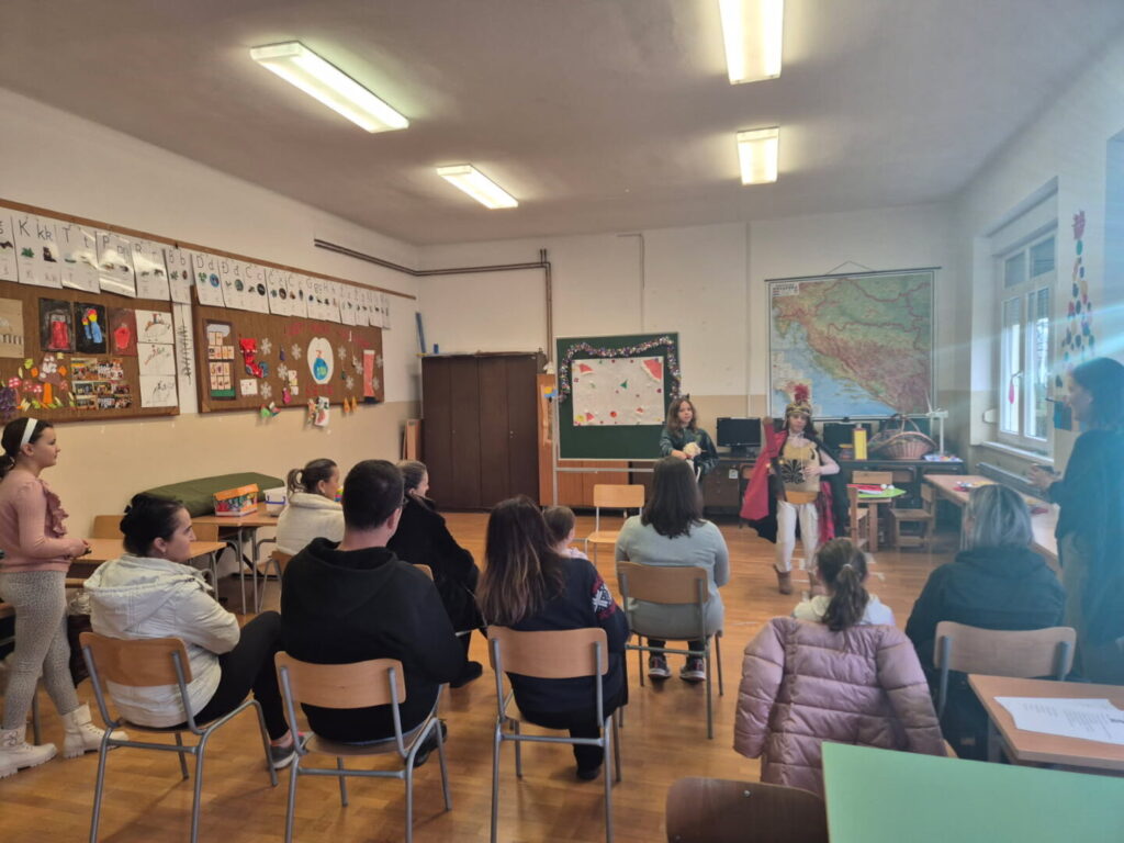 Prof. Sandra Maglov i učenice četvrtog razreda OŠ Ivana Perkovca gostovale su sa izvedbom igrokaza na njemačkom jeziku, Roditelji učenica takođe su uveličali ovaj događaj svojim dolaskom.