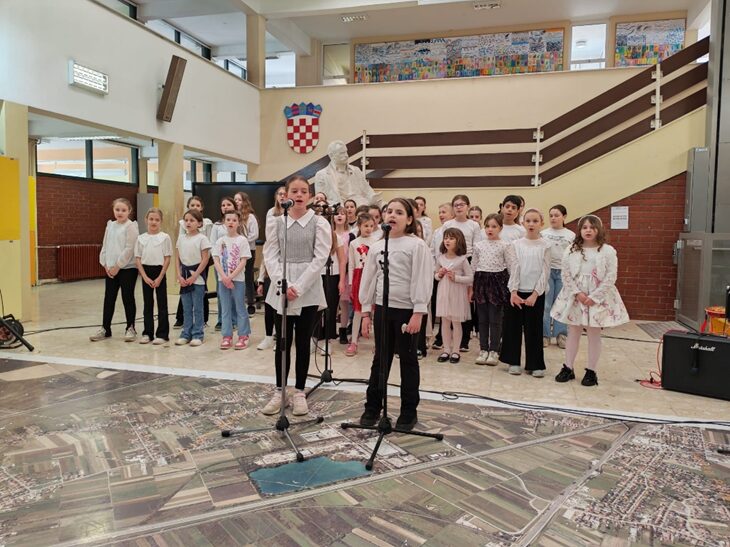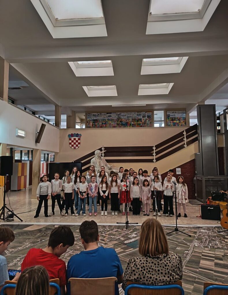 Učenici od 1. do 6. razreda na Smotri su našu školi predstavili s izvođenjem pjesama: “Kao pjesma” i “Da sam ja netko”. Njihova izvedba nagrađena je ogromnim aplauzom publike, a stručni žiri ih je pohvalio kako su ujednačenom izvedbom donijeli pravo osvježenje na pozorni